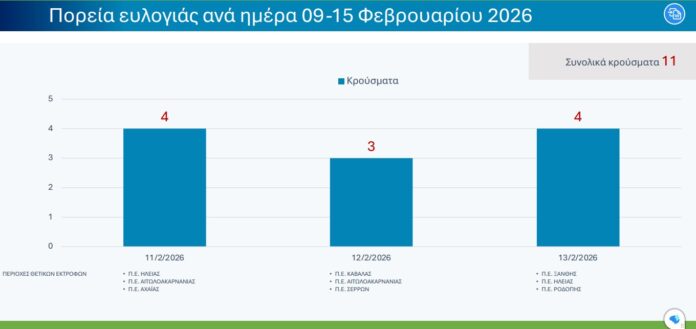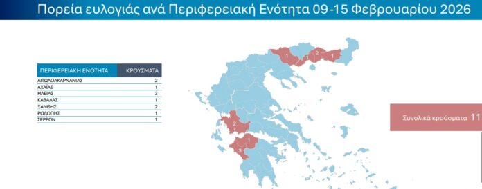Για το διάστημα 9–15 Φεβρουαρίου 2026, τα νέα περιστατικά καταγράφηκαν στις εξής περιοχές: